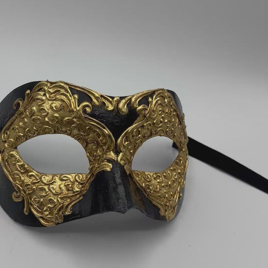 Elige estilo, clase y misterio con esta máscara de hombre negra y dorada.