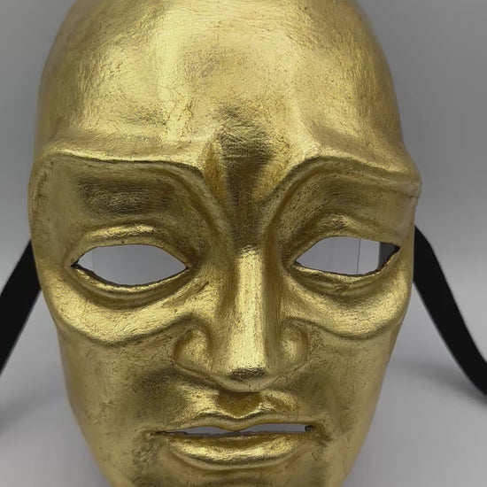 Le masque de Prêtre est recouvert de plaqué or et a deux lanières pour attacher le masque. Le masque peut être aussi pendu au mur grâce à ces deux lanières.