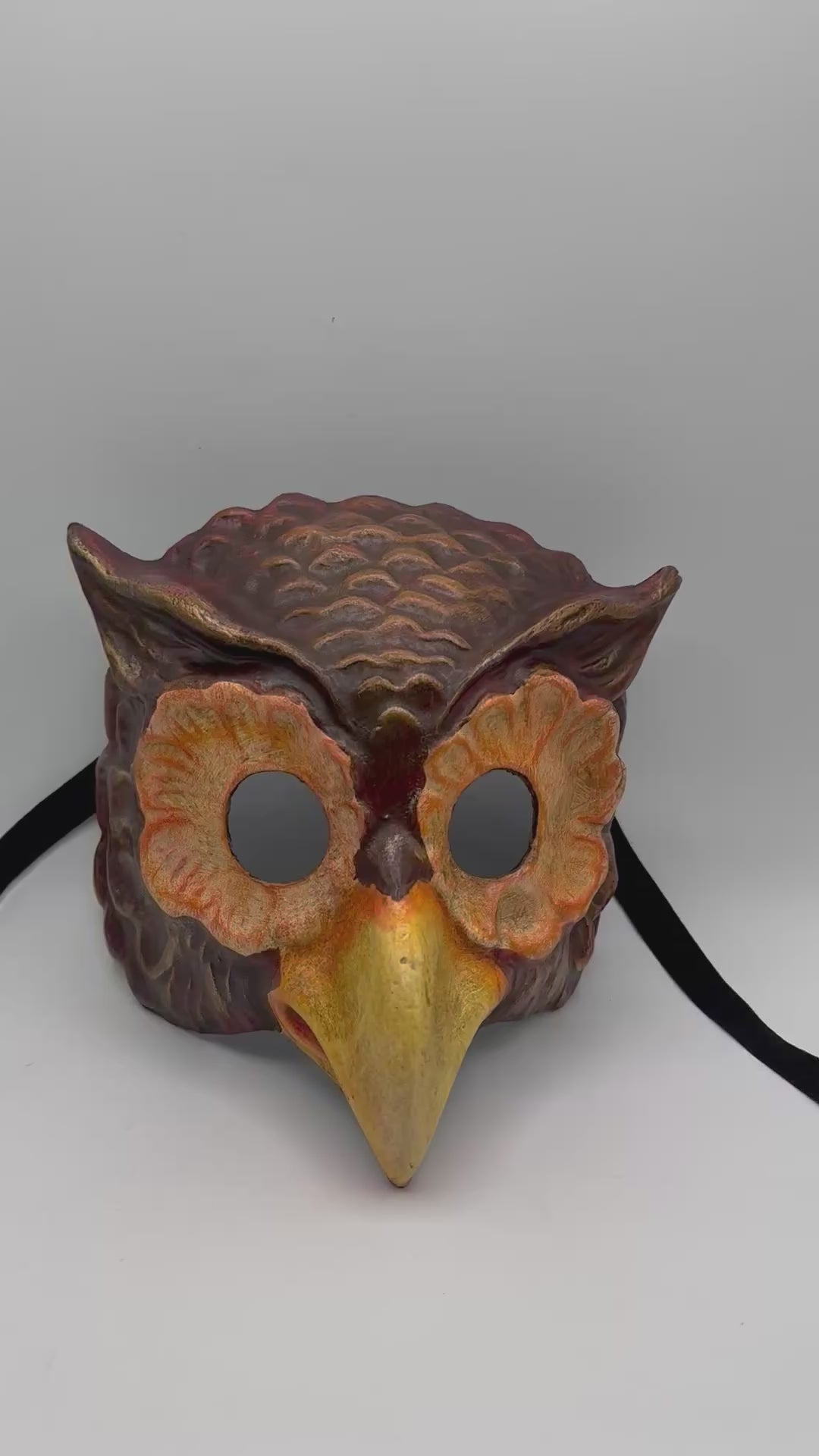 Ce masque de hibou artisanal est une pièce audacieuse et expressive, inspirée par la présence mystérieuse du hibou.