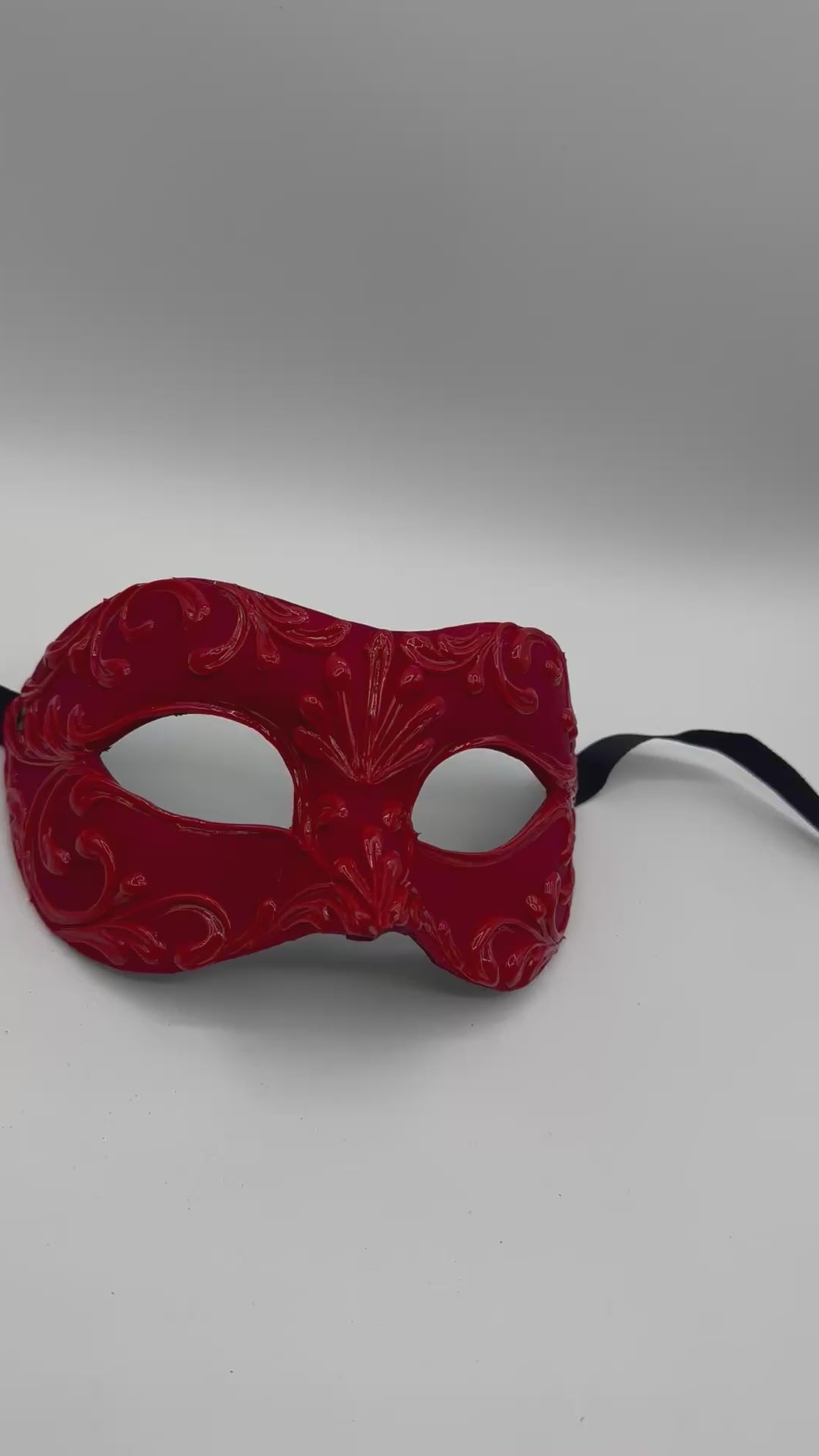 De levendige rode kleur in combinatie met de sierlijke barokke patronen geeft dit masker een dramatische en luxueuze uitstraling — ideaal voor maskeradeballen, gala’s, carnaval, Halloween of themafeesten.