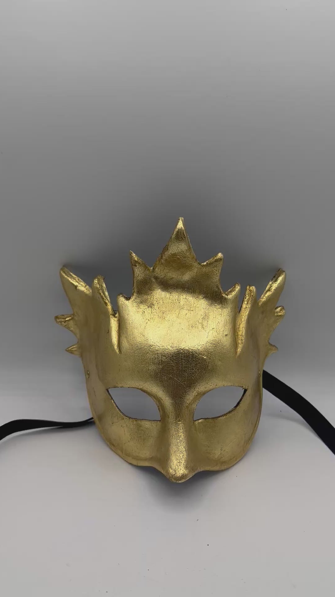 Het masker is handgemaakt en mooi afgewerkt met een laag bladgoud. Met de twee bandjes bind je Bacchus gemakkelijk rond het hoofd.